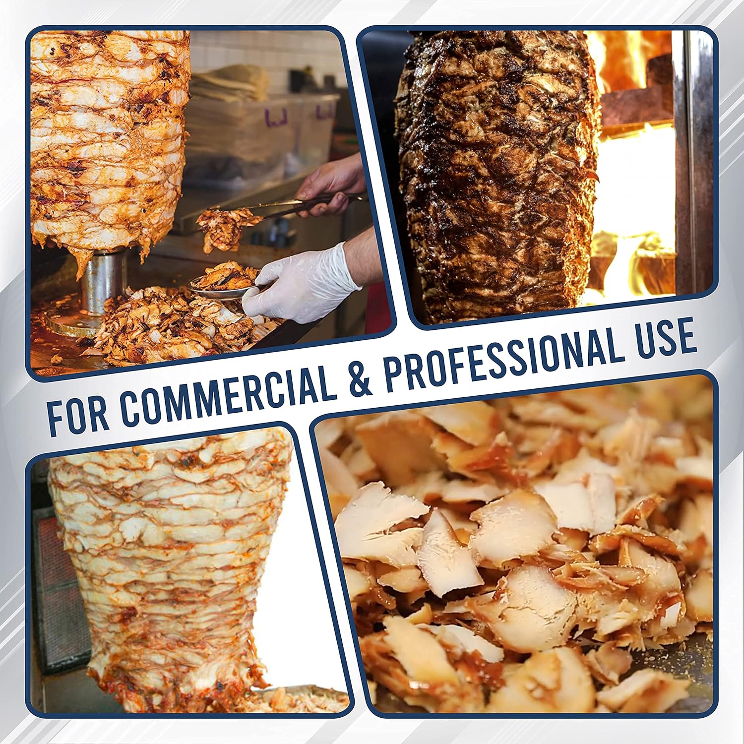 Perfect for kebab shops, gyro restaurants, shawarma stands, and any commercial kitchen serving 100+ meat dishes daily.