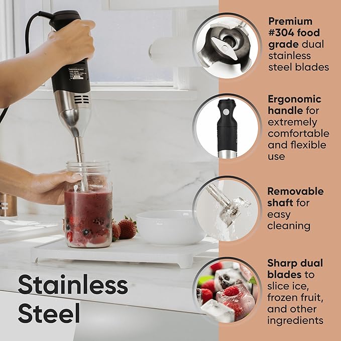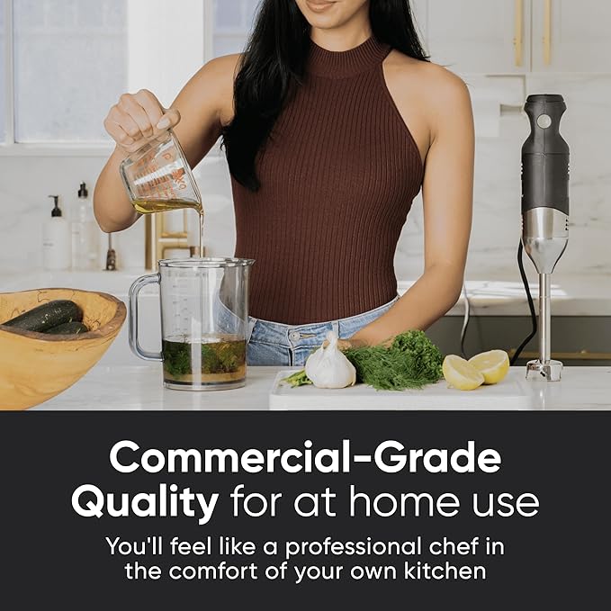 Silky soups, velvety sauces, perfect emulsions—this handheld blender makes it easy to transform ingredients into gourmet results, letting you unlock creativity in every dish.